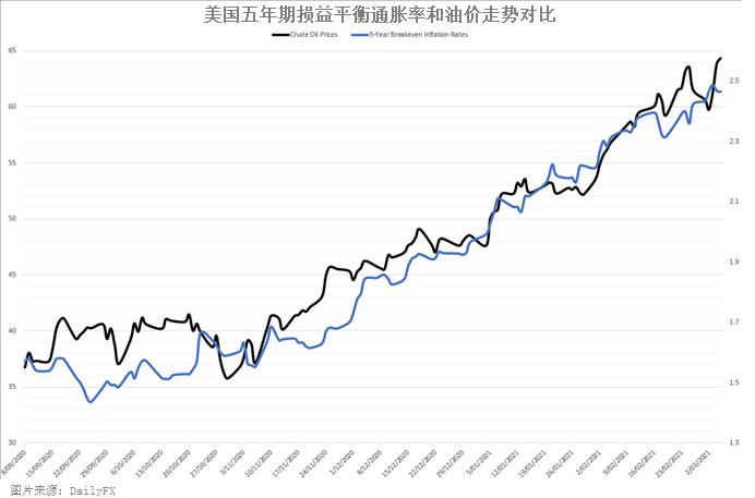 如我们此前分析多次指出,原油价格和通胀预期是相辅相成的作用,这次通胀预期的飙高少不了油价的“功劳”,特别是油价的强势表现持续吸引着关注。下图可以看到衡量通胀预期的美国五年期损益平衡通胀率和油价在近期一起创下新高,所以今晚的CPI数据对油价也是一项关键的指引。如果CPI回升强化物价将急速上涨的预期,已经连跌两日的油价将从本周低位寻求反弹。但留意晚间的EIA原油库存预计将录得大规模增加,短线会带来下行压力。