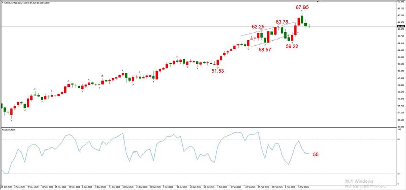 图4,USOIL 2021年3月合约,03月10日 日线周期