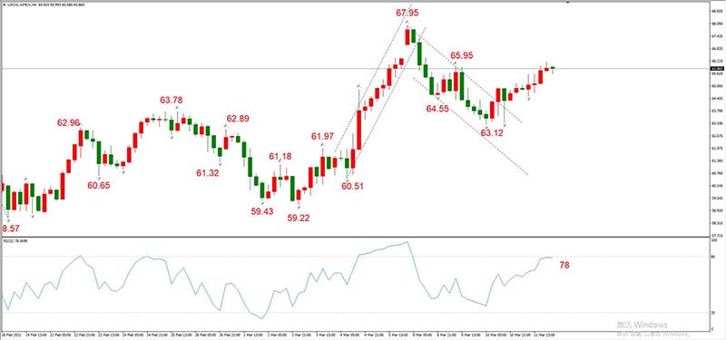 图5,USOIL 2021年3月合约,03月12日 H4周期