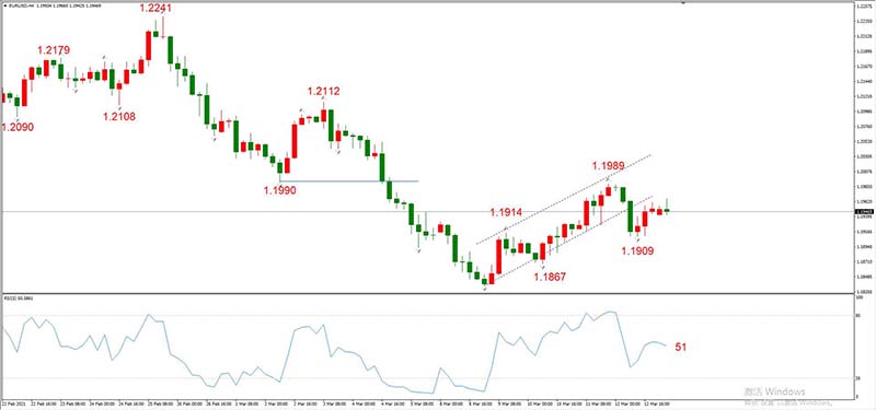 最新勾形:1.1989~1.1909~市价,回撤勾形