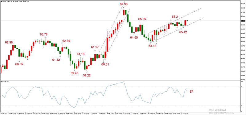 图5,USOIL 2021年3月合约,03月15日 H4周期
