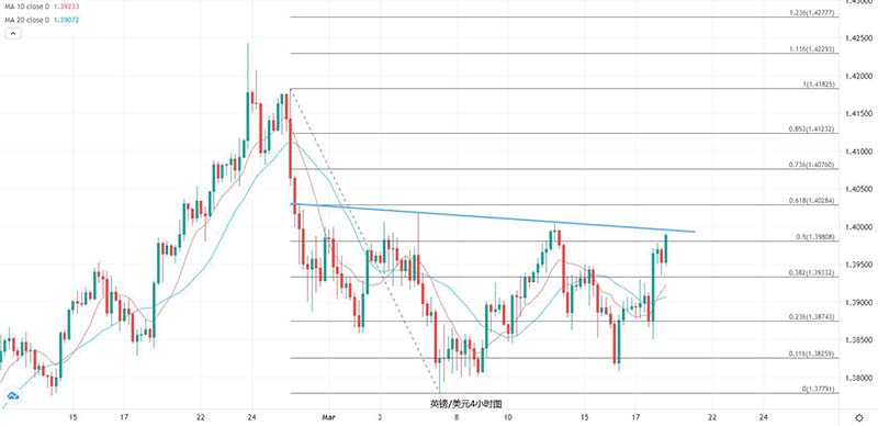 总的来看,今晚的英国央行论调可能会跟美联储决议有雷同之处,但有望为英镑提供支撑。英镑本周早些时候接连跌破1.40和1.39关口,昨日创逾一周最大涨幅后,1.39关口转为了支撑,随着市场观望着今晚的决议,在此之前的进一步反弹可能受限。今晚的决议如果没有意外肯定经济前景的乐观,英镑将重返并企稳1.40关口,虽然2月份以来的延伸趋势线可能产生阻力,但确认突破后可展望升至1.4028或挑战1.4076。