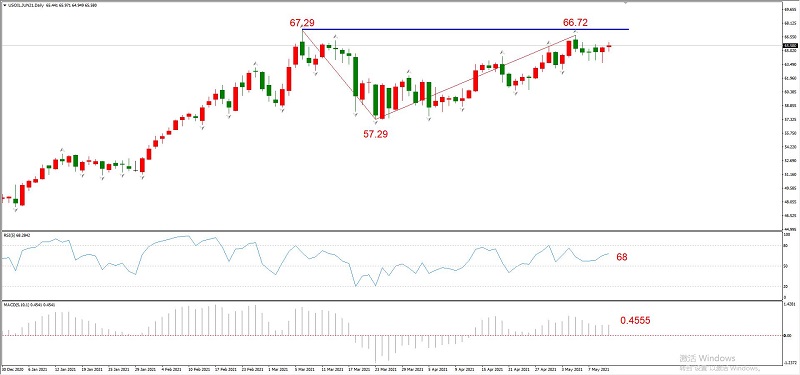 图3,USOIL 2021年6月合约,05月12日 日线周期