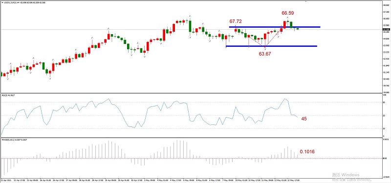 图3,USOIL 2021年6月合约,05月13日 H4周期