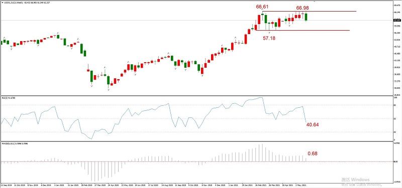 图3,USOIL 2021年6月合约,05月21日 W1周期