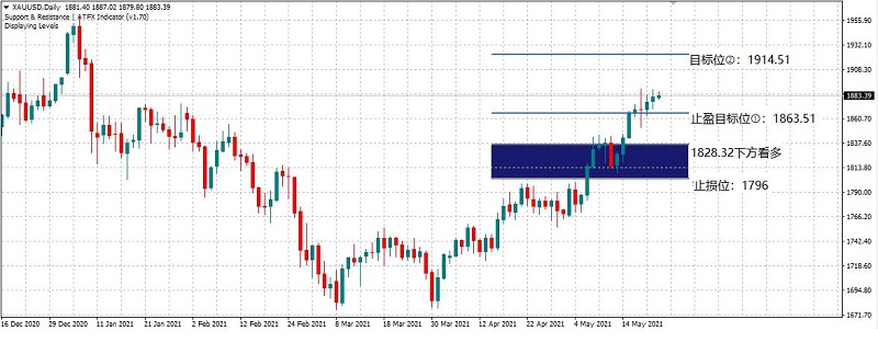 止盈目标位①:1863.51,目标位②:1914.51