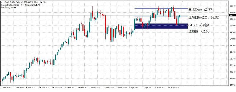 止盈目标位①:66.32,目标位②:67.77