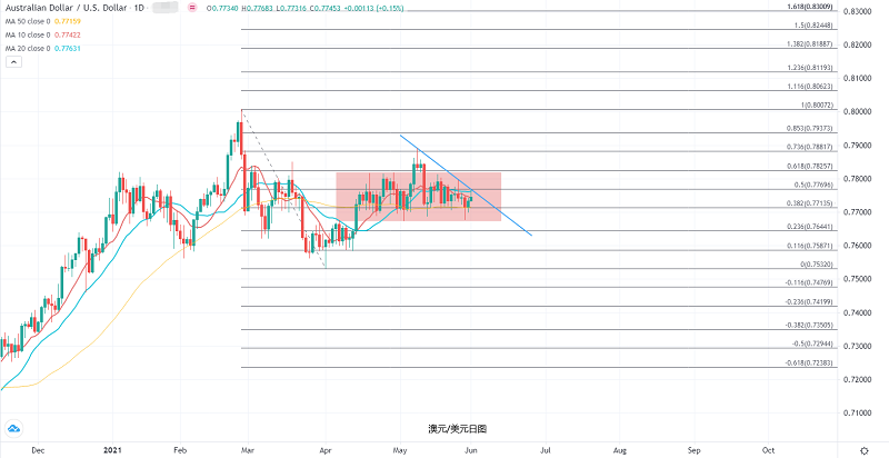 澳储行今天中午公布了最新利率决议,既没有意外也没有惊喜,在决议中重申了宽松立场,明确表示在2024年之前不太可能加息,与5月份会议预期一致,政策没有出现任何变化。尽管近期多项数据显示增长快于预期,但澳储行对于今明两年的GDP增速预期分别维持在4.75%及3.5%不变。