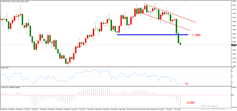 综合判断:突破通道下轨,未来看跌,且跌幅较大。宏观面来看,美国CPI已经达到5%,步入恶性通胀轨道,美联储缩减QE预期不断增强,EURUSD长期受利空压制。
