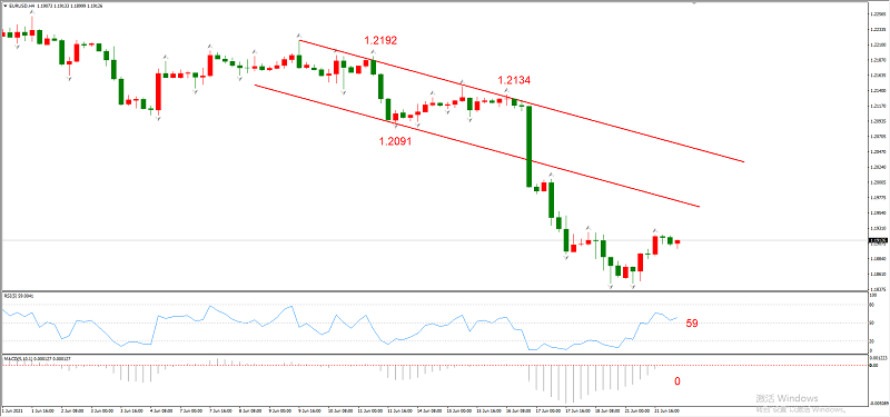 图1,EURUSD 06月22日 H4级别