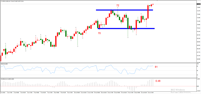 图3,USOIL 2021年7月合约,06月22日 H4周期