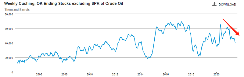 2020年疫情期间,EIA库存最高值为6544.6万桶,相比最新值4026.1已经大降38.48%,代表需求面复苏迅速且稳健。从历史曲线来看,4000万桶是库存红线。红线之上,库存有下行压力;红线之下,库存有上涨动力。这类似于震荡类技术指标,高位会出现超买,低位会出现超卖。一旦页岩油厂商加入增产大军,OPEC+成员国将很难保持克制,届时“群雄逐鹿”式的原有产量爆发将会是大概率事件。