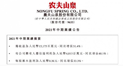 农夫山泉(9633)同样在昨日公布上半年业绩,营收、净利润双双大增并且超出市场预期。业绩公布后获得大行机构予以积极展望,今早农夫山泉股价高开逾5%,为8月12日以来高位。