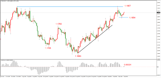 综合观点:趋势多头,但已经触及中期阻力1.1907,有回调压力。