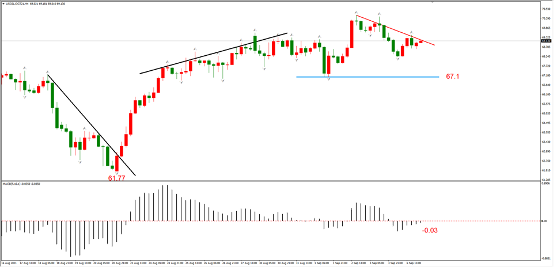 结构上看,短期支撑位67.1依旧有效,预计当前回调波段结束后将重启涨势,整体方向依旧偏多。