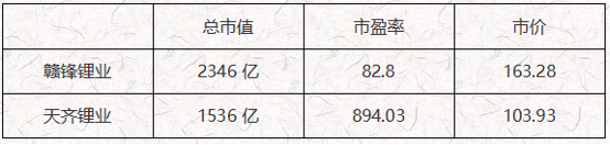 从总市值来看,赣锋锂业高出天齐锂业810亿元人民币,占比52%,赣锋锂业在规模上优势显著。