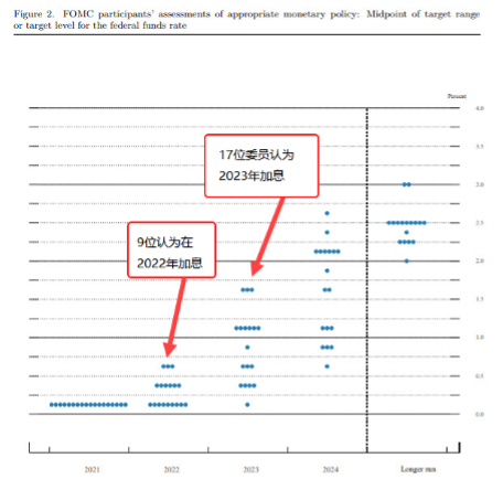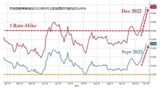 在纪要公布前,联邦基金市场显示,美联储在2022年9月之前加息的可能性约为90%,这充分反映了美联储在明年正式升息的预期。尽管最新的点阵图显示委员们预计最早在2022年下半年开始从零上调短期利率,但实际上的收紧步伐可能非常缓慢。