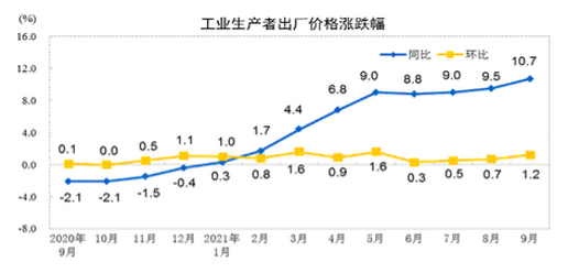 今日中国公布9月份通胀报告,CPI年率涨幅降至半年最低,录得0.7%增长,低于1%的预估值,而9月PPI同比涨幅攀升至1996年10月有该数据记录以来的新高,主要受煤炭和部分高耗能行业产品价格的持续高位,叠加国内煤炭供给侧收缩及“能耗双控”,煤炭、石油开采等行业价格同比涨幅40%。