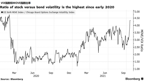 与此同时,股市和债市的走势出现分化,VIX指数和追踪公债期权隐含波动率的MOVE指数比率随之飙升至2020年2月以来的最高水平。周三美国10年期公债收益率从稍早触及的五个月高位回落,当前投资者越来越认为美联储不会快步进行减码,而且历史走势表明,股市在加息周期的早期阶段表现良好。