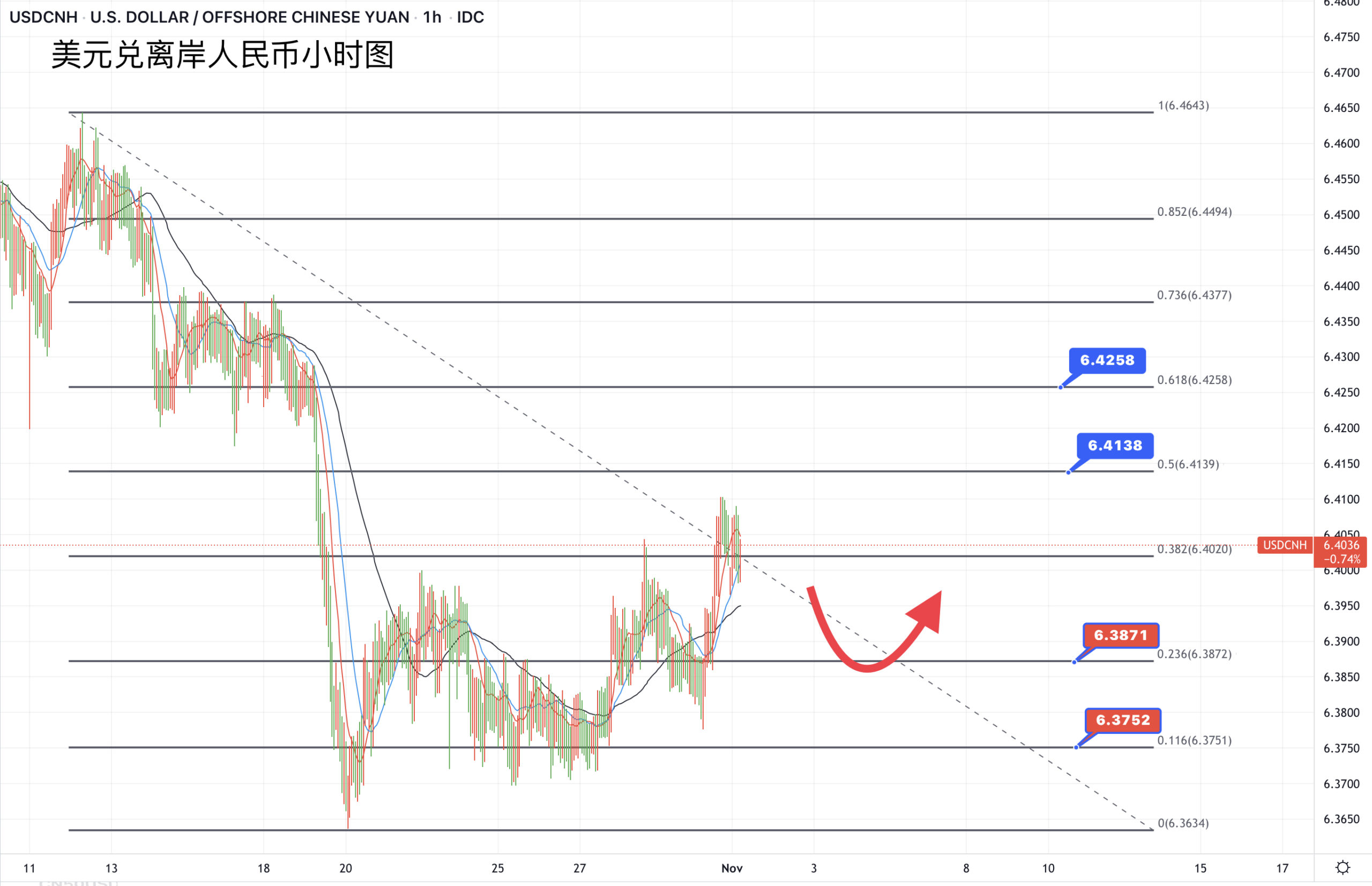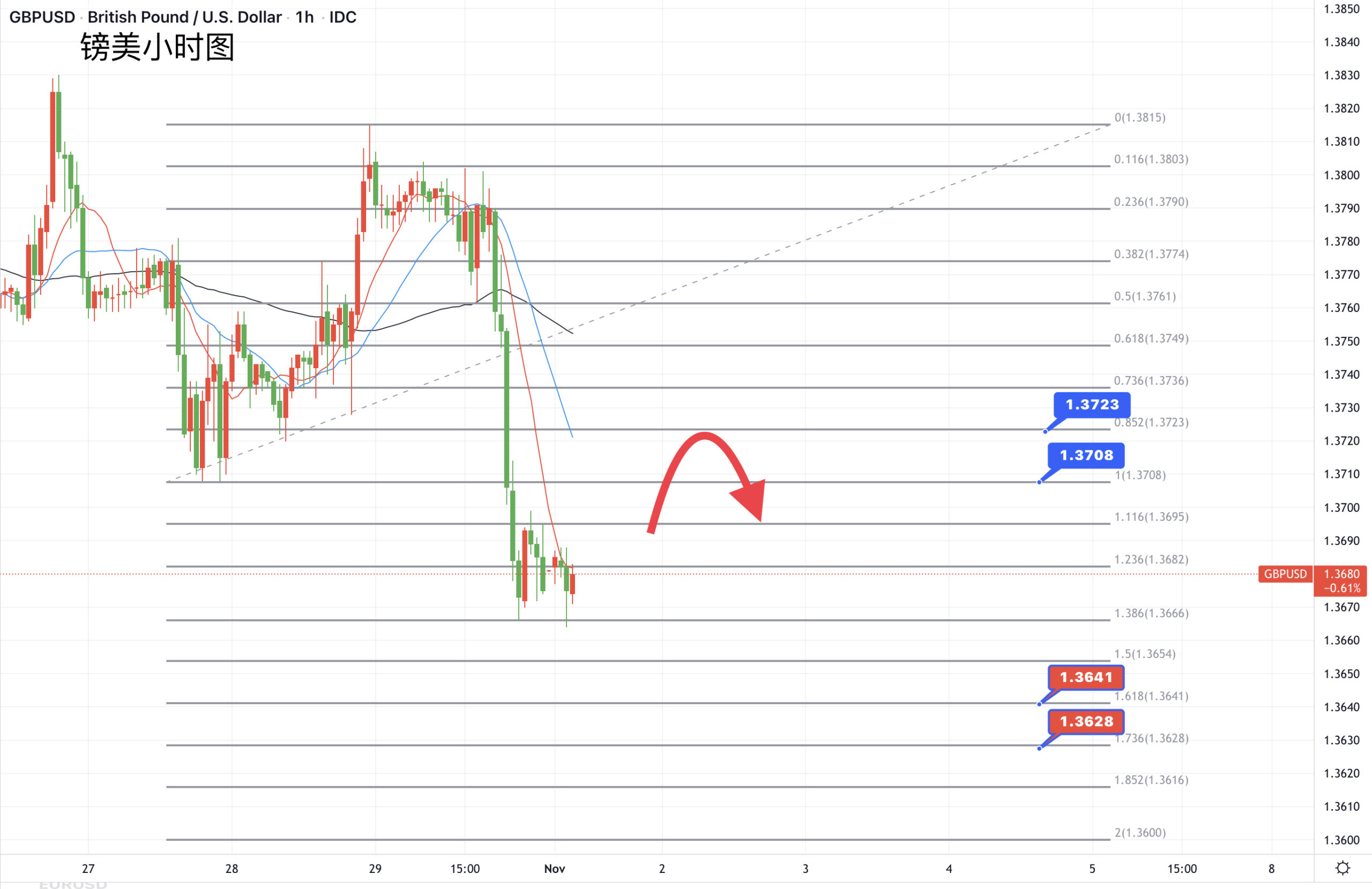 欧元区10月通胀从一个月前的3.4%升至4.1%,超过市场预期,但美元延续反弹拉低欧元大跌回吐前日欧央行决议后的全部涨幅,并跌至逾两周低位,本周焦点几乎集中在美国,所以美元走势将是指引欧元的关键,目前留意欧元是否向10月低位1.1524靠近。
