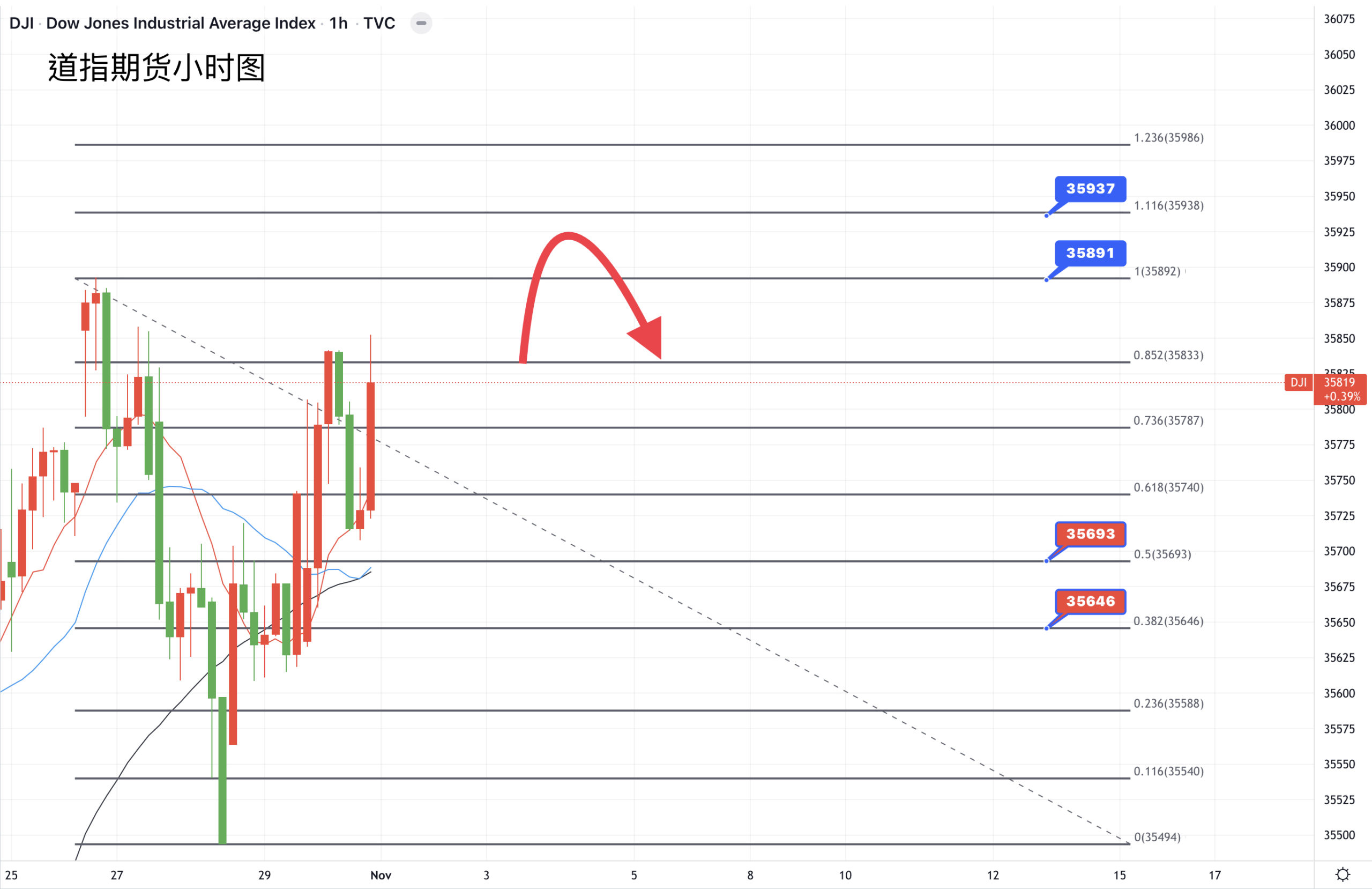 受企业盈利靓丽提振,道指期货上周五收高向纪录高位靠近,收盘在35850上方创出新高,本周各项关键指引前,关注道指会否在高位涨势暂歇,如果在此之前仍尝试走高,那么关注35989/36046阻力。