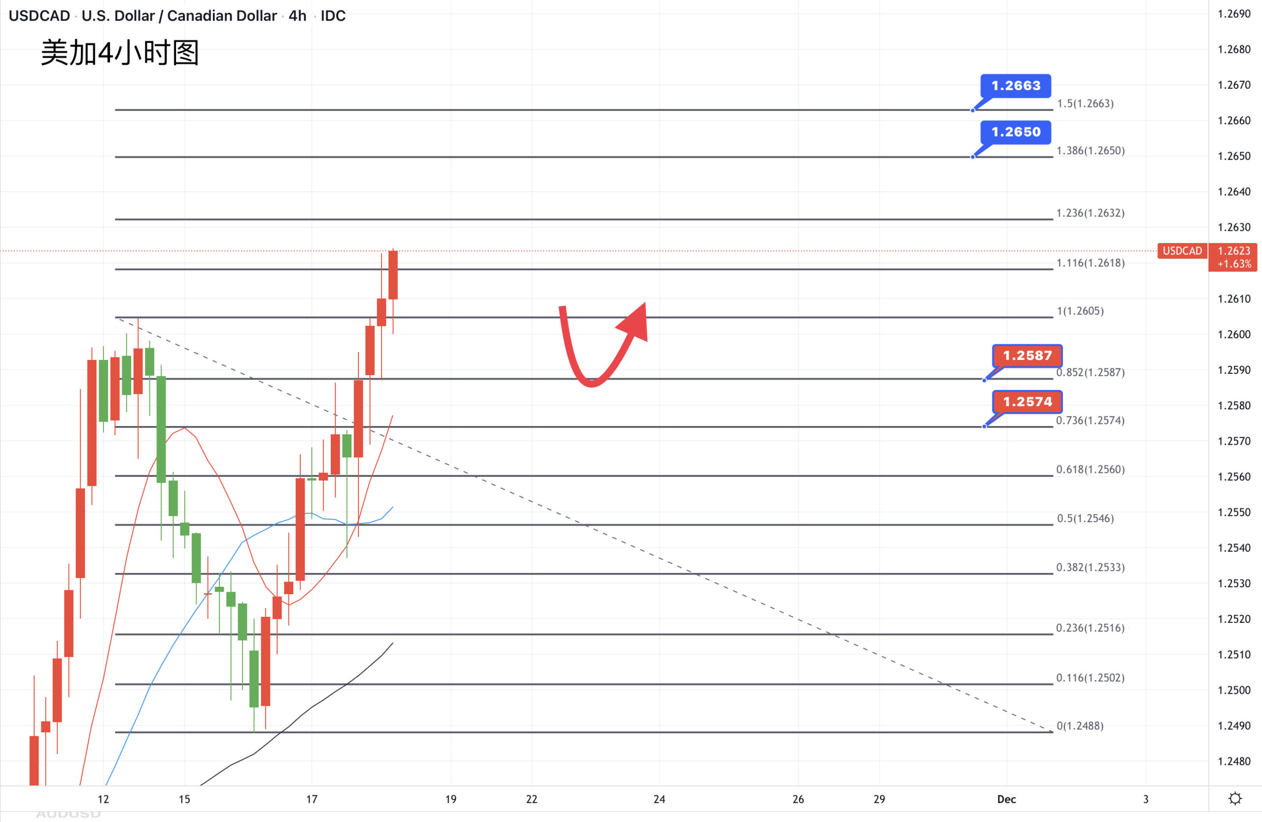 尽管美元向下加元继续随油价下跌走软,且加拿大昨日公布通胀数据与预期一致,美元兑加元昨日触及10月6日以来最高位,并自10月初以来首次收高于1.2600关口,只是看是否能有更多上行空间跟进来确认是否有效突破,如果能持稳该位之上,可以继续上望1.2630/1.2646阻力。