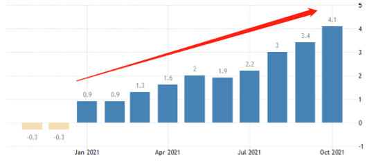 欧元区的通胀水平一直在增加,CPI最新值4.1%,面临失控风险。不过,客观来看,美国的CPI早在今年4月份就已经达到4.2%,而当时市场对该数据反映平淡。欧央行4.2%的通胀现状,如果不能急剧放大,并不会对欧央行的货币政策构成太大压力,最起码,不会像美联储的压力那么大。