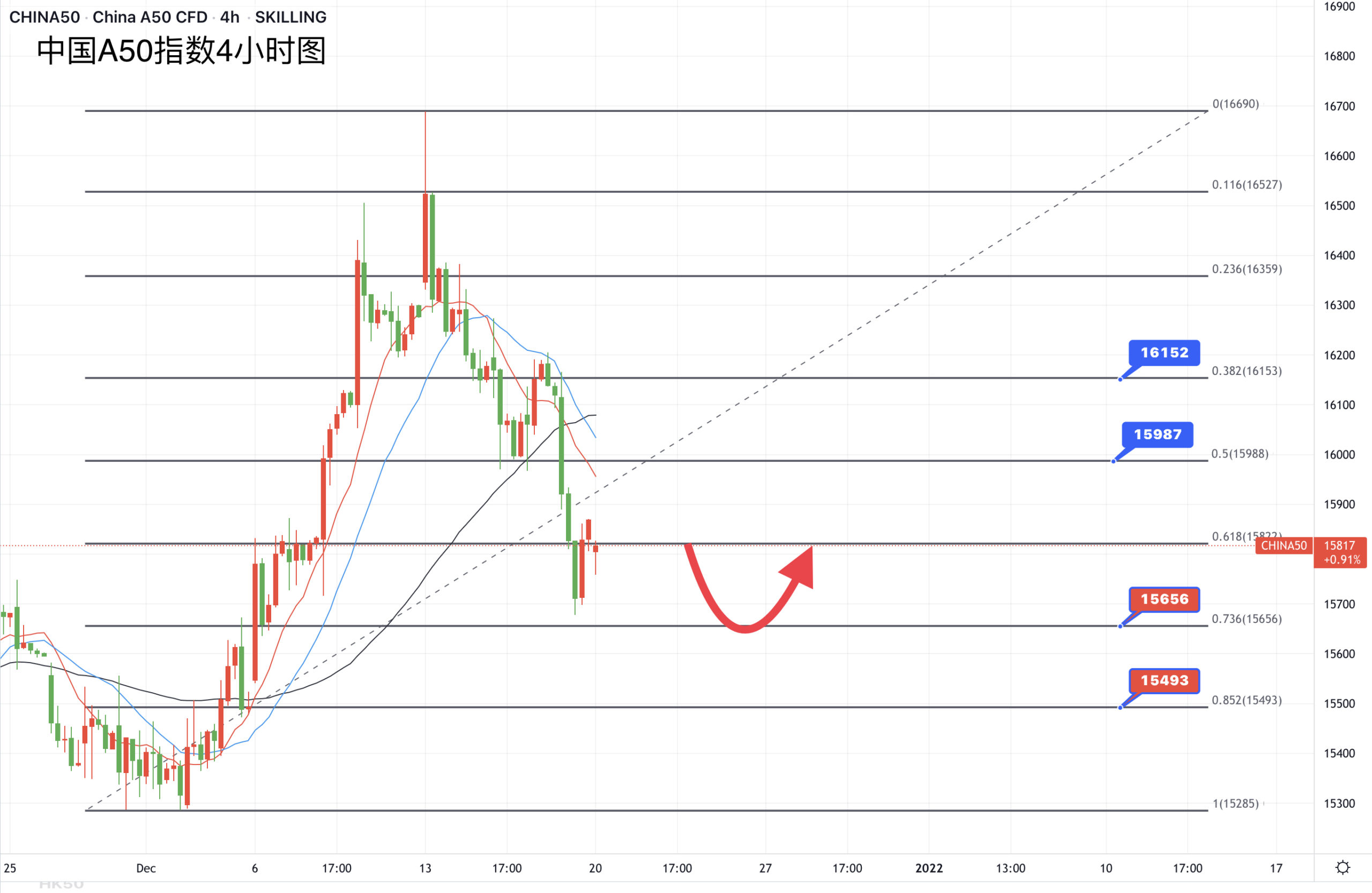 中国央行今日宣布将一年期贷款市场报价利率(LPR)调整至3.8%,为市场情绪带来利好。CHI50上周基本上呈现自顶部的单边回落,周线结束了两连涨,10日均线在确认转为阻力后在20日均线获得支撑,而今早则在消息的带动下自该位上扬,所以有机会继续上望15980/16163阻力。
