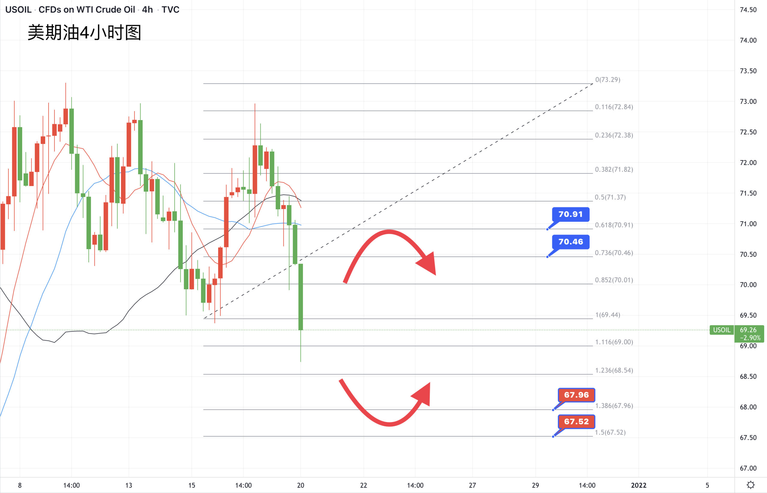 欧美部分国家疫情重新带来原油需求前景的困扰,原油期货上周五回吐前两日的涨幅,周线也同样收低,重新退守到70美元关口附近,而今早低开并低走,来到了两周的最低位,留意支撑在69美元下方。