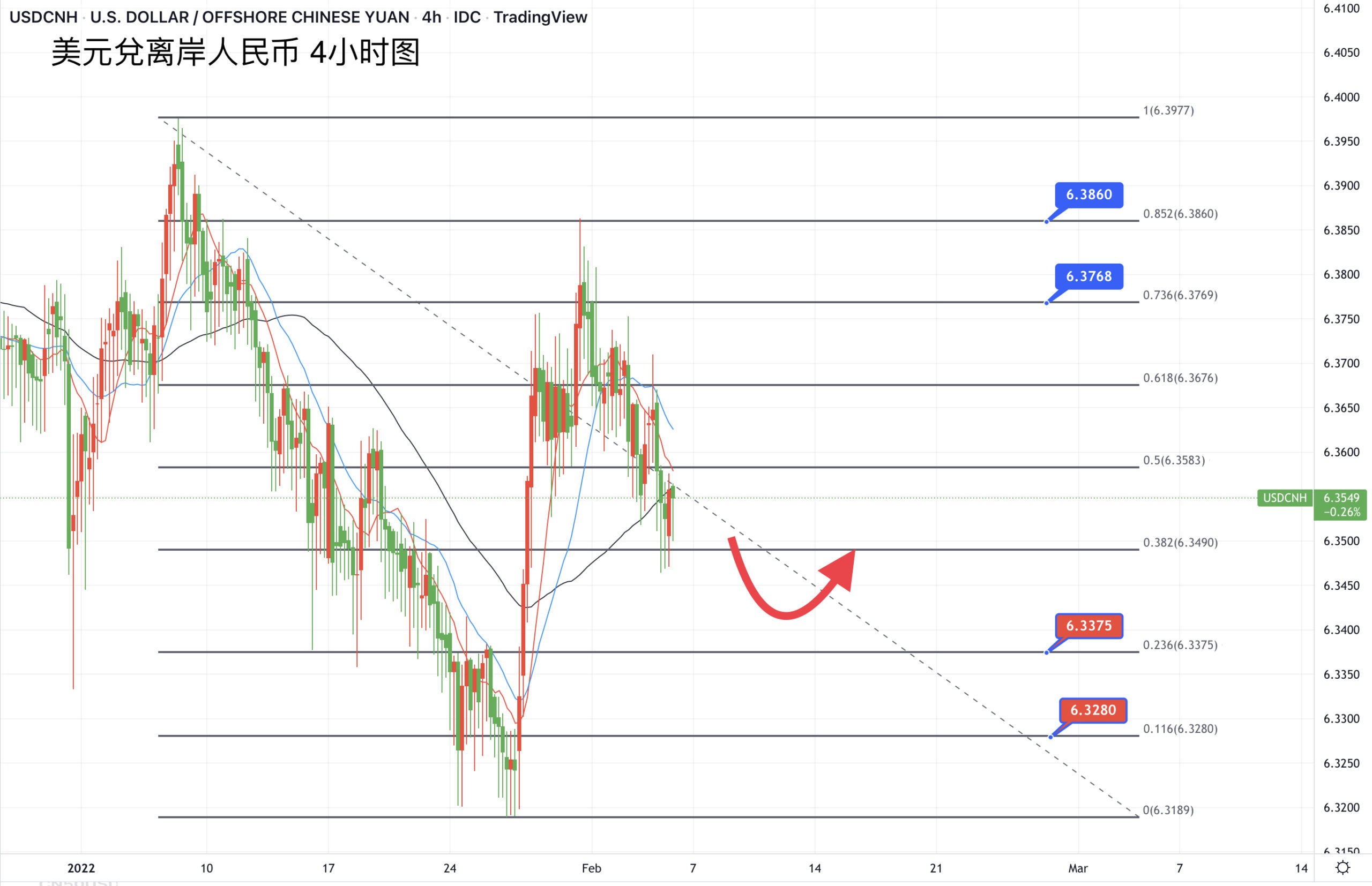 美元兑人民币昨日录得三日连跌,收于一周最低位处,技术上正好守在日图均线的支撑6.3500关口处,所以今早尝试自低位反弹,暂时以6.36上方为阻力目标,同时也仍需关注下方的6.35下方依然有被触及可能。