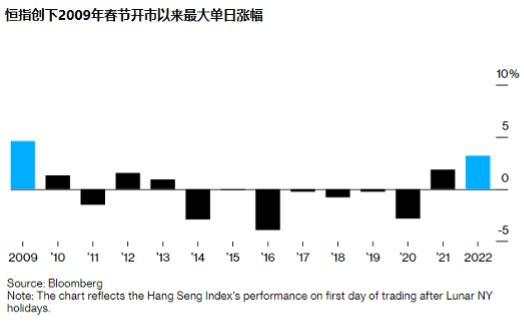 在今早自逾一周高位掉头前,港股上周五的春节后首个交易日显著造好,收高771点,创下2009年春节开市以来最大涨幅,上周两个交易日累计上涨1023点,恒生科技指数周五当天收涨逾3%,金融股、汽车股、体育用品股、餐饮板块都有不错表现。