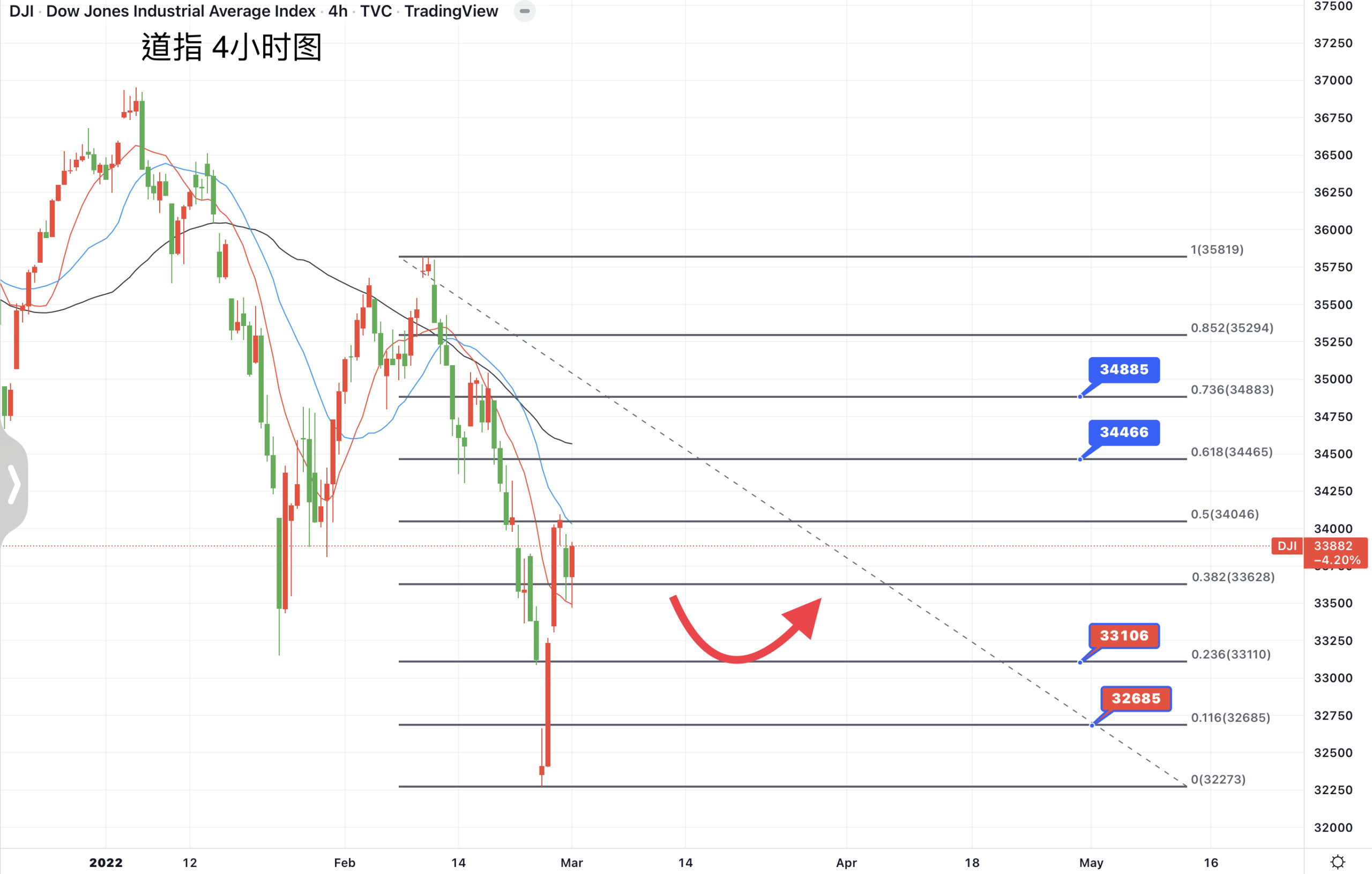 随着俄乌危机延续,不确定性依然主导市场,CBOE市场波动率指数连续第二个交易日上涨,不过市场整体情绪仍稍有平复,技术上道指期货自上周以来面临10日均线阻力,如果突破可真正指向34000关口上方。