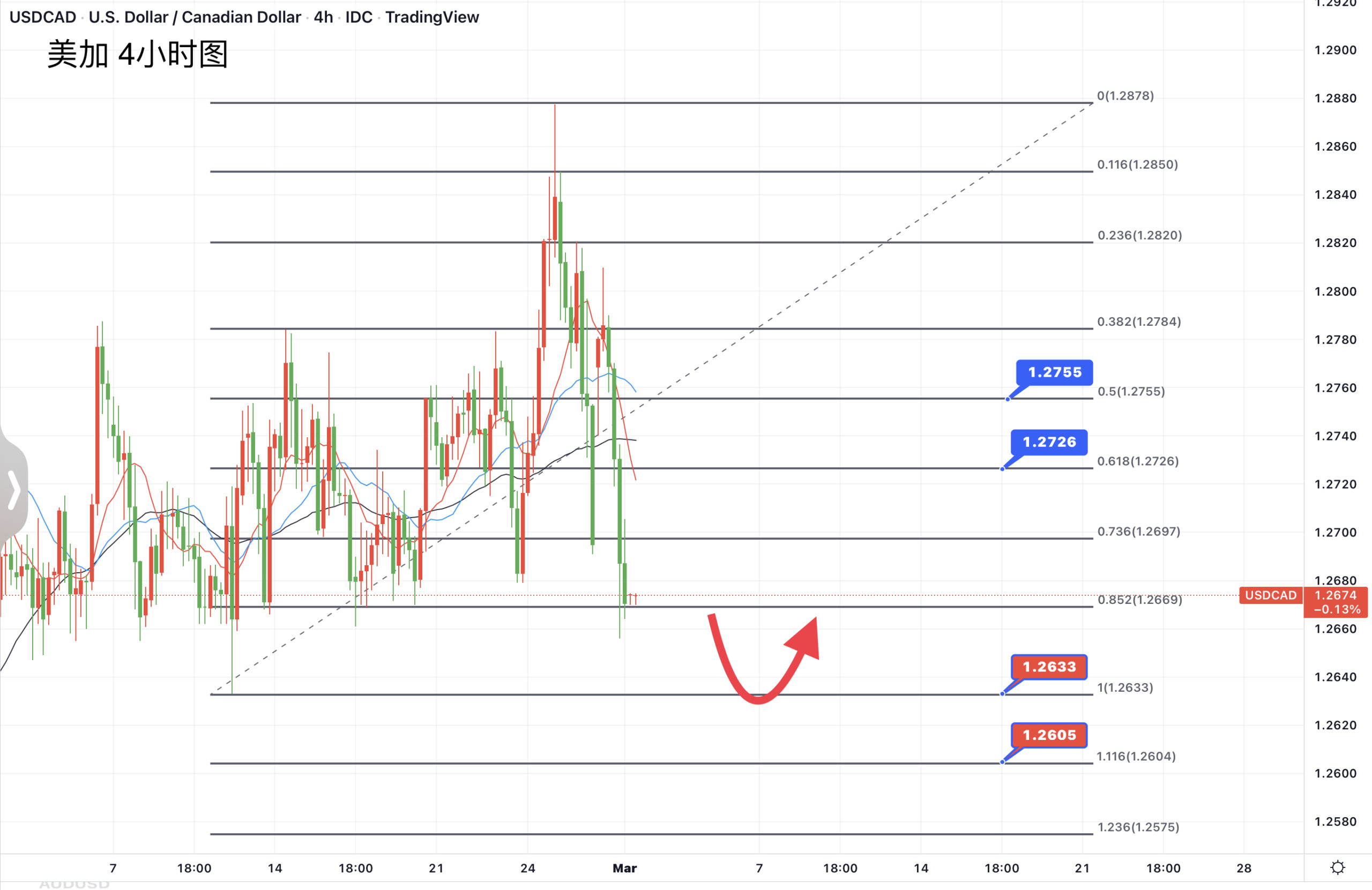 国际油价保持升势,美元兑加元连续两日大幅收跌,昨日最低触及了近三周低位,正式下破日图均线支撑范围,视线也转焦至1.2700关口下方,并可能继续将下行空间扩大至1.2635/1.2606。