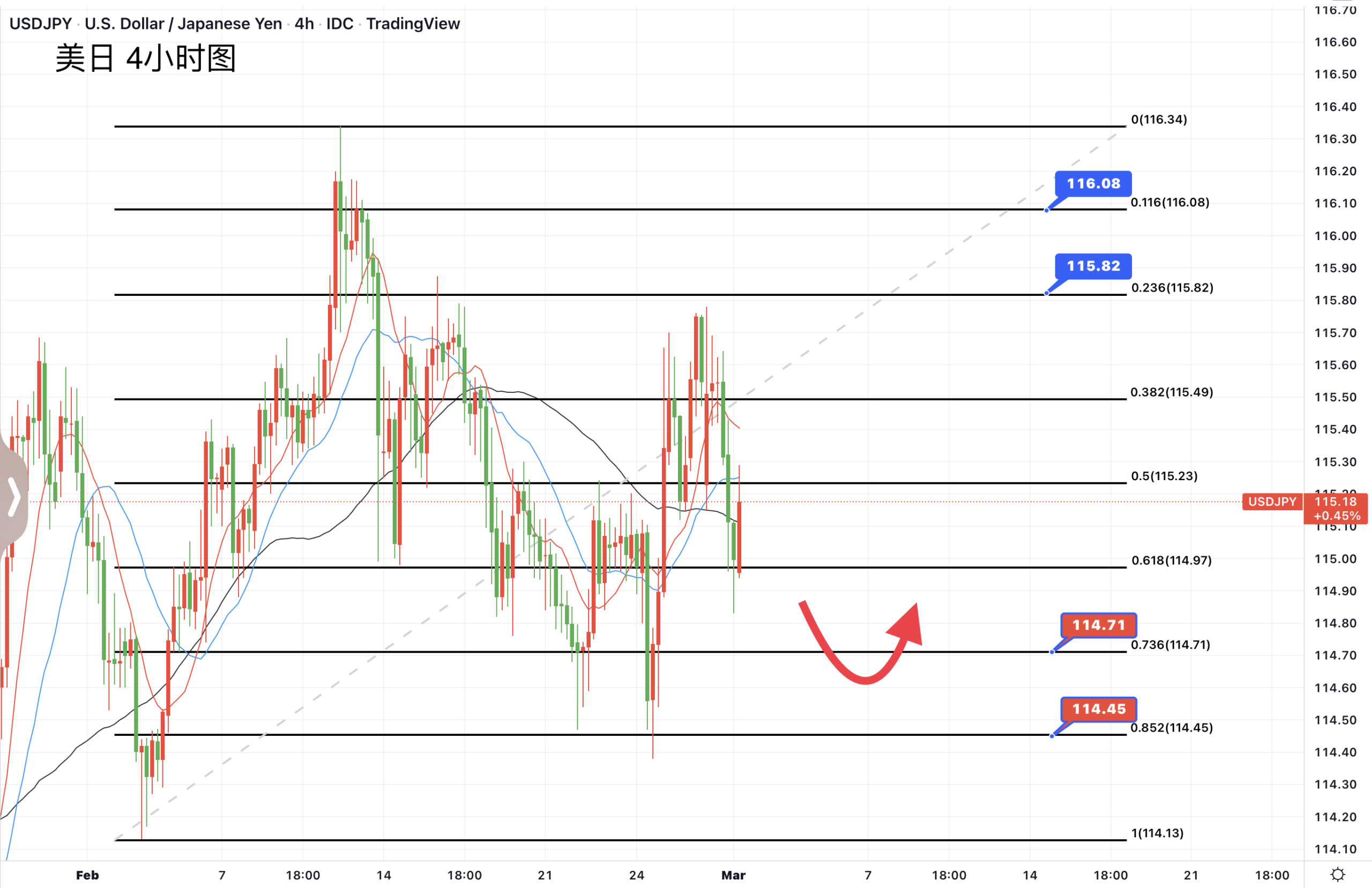 欧元兑美元昨日实现自近期低位的反弹收盘回到1.12关口之上,只是俄乌局势仍未明朗,仍会限制欧系货币的回升空间,除非日内依然能收于该关口之上,可以暂时捍卫反弹。
