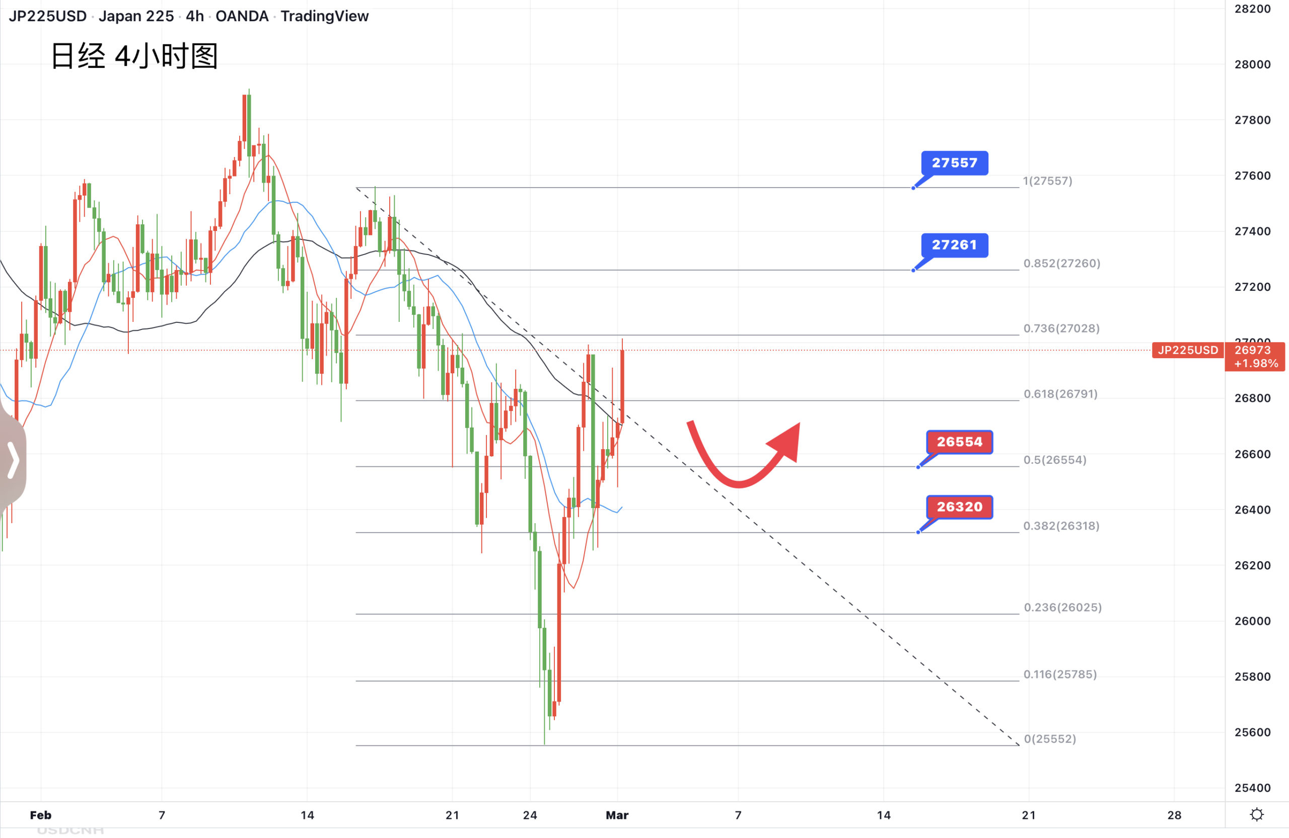 日本股市近期基本追随隔夜美股市场,在连续两日收高后今早触及了逾一周的盘中高位,如果能突破27000将是近期主要区间的突破,可以帮助短线看涨情绪的升温。
