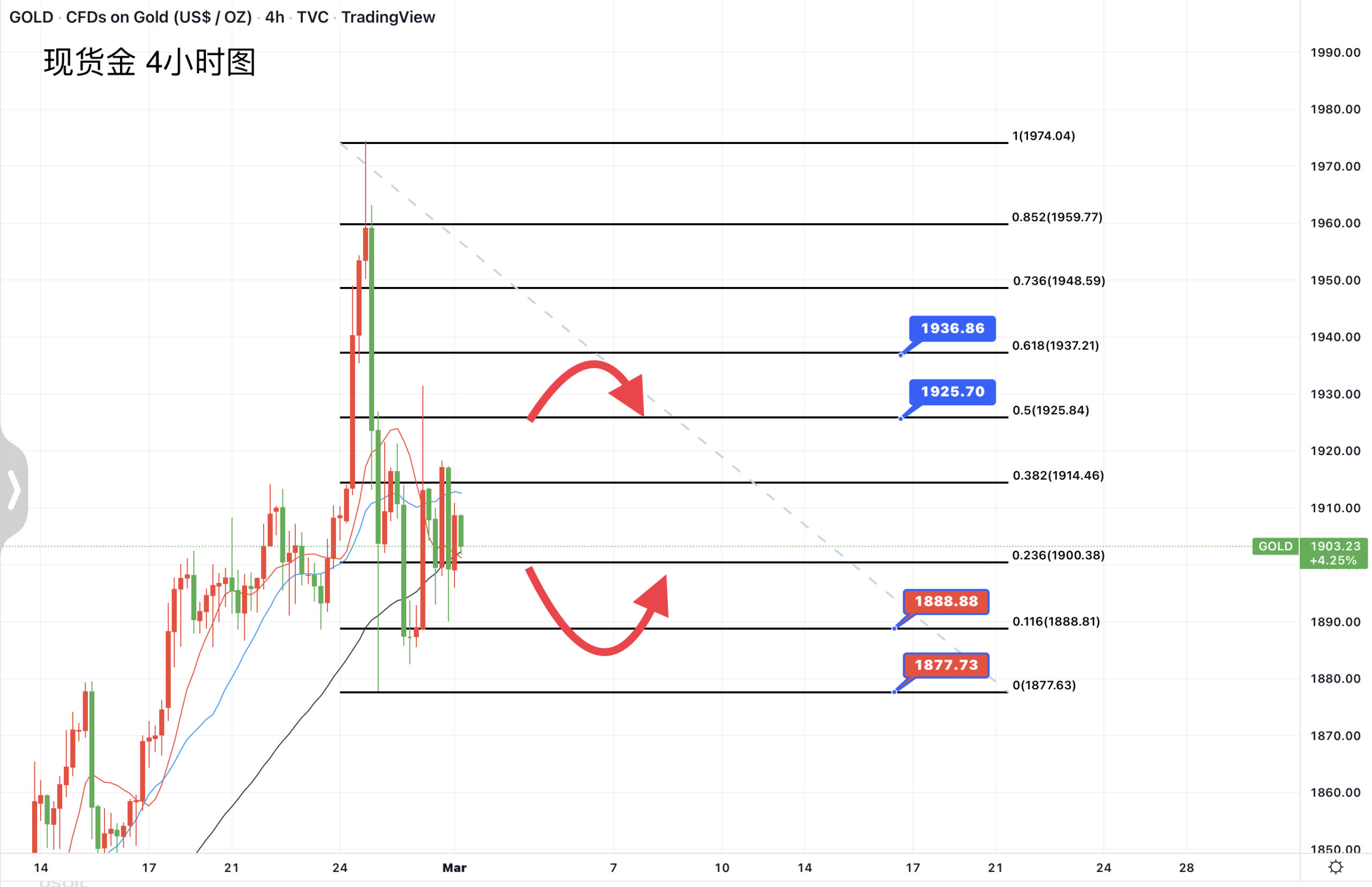 现货黄金昨日早段曾一度冲高触及1930美元上方,不过最终自高位一路回吐,部分投资者在高位结利衡量最新的局势,金价暂时处于1910美元下方,1900关口处集合了10日均线会是关键支撑。现货白银关注24.72/24.92阻力和24.03/23.83支撑。