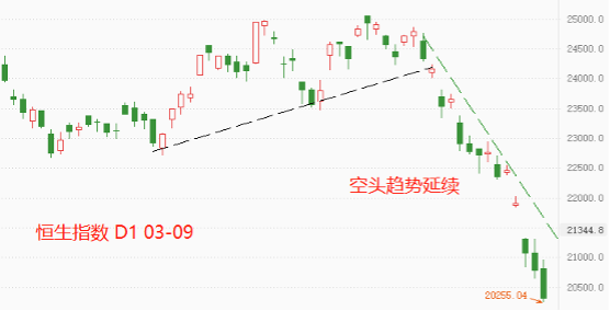 大盘表现:上证指数创出2020年11月以来新低,深证成指也是一样,本周前三个交易日持续大幅下跌。虽然美国三大股市跌幅相对较小,但英国富时、德国DAX、法国CAC跌幅仍在扩大,情绪面无法对港股形成有效支撑。