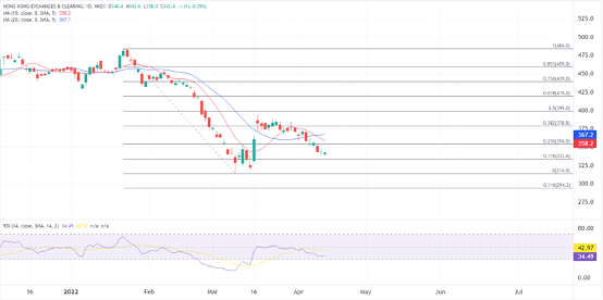 自3月中旬以来港交所股价一直处于下行通道内,如果以上消息配合外围升息环境对金融股形成利好,股价若进一步下探3月低位后有望获得支撑后开启反弹,如果重返400元上方将是转为看涨的转折点。