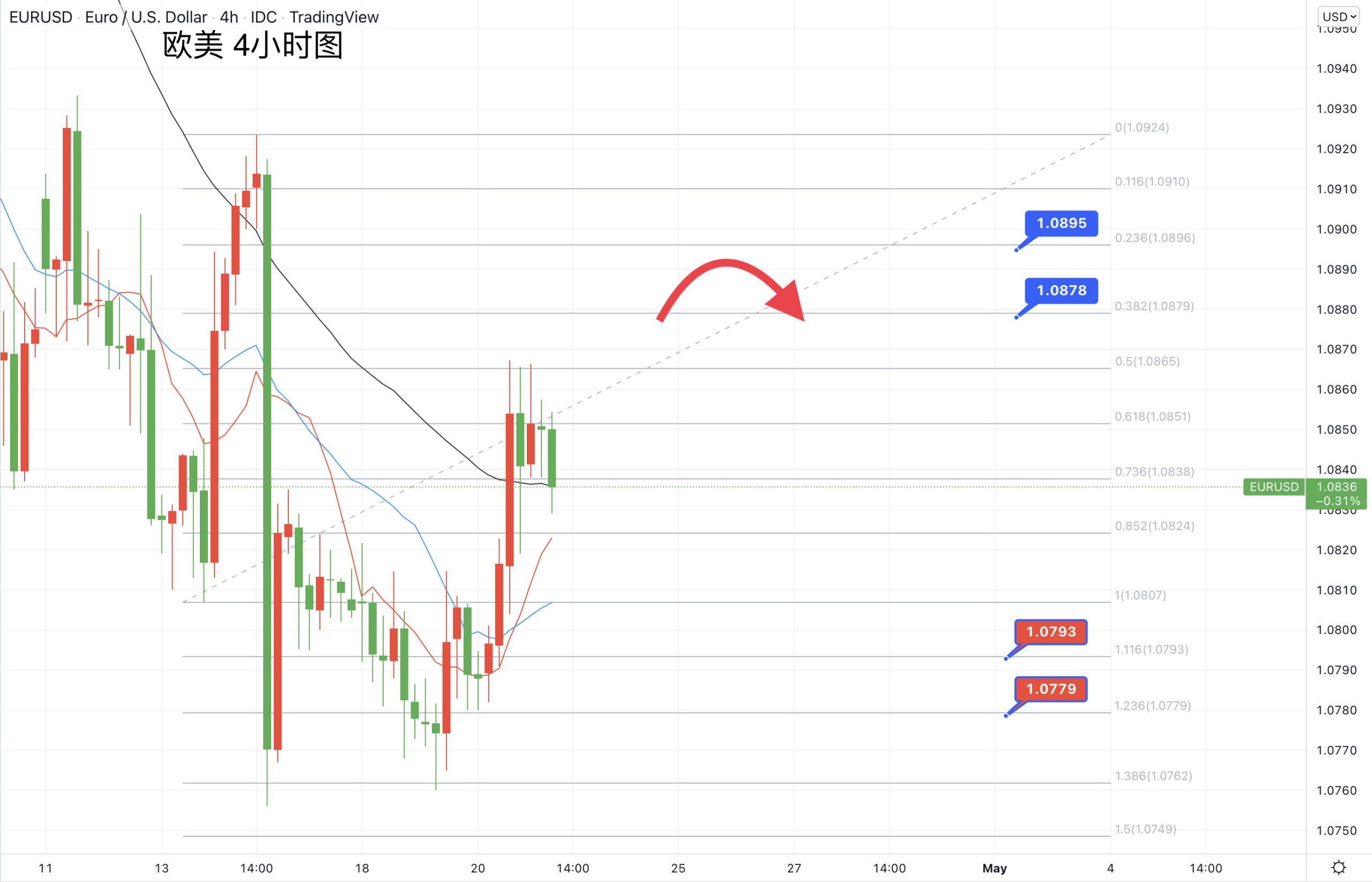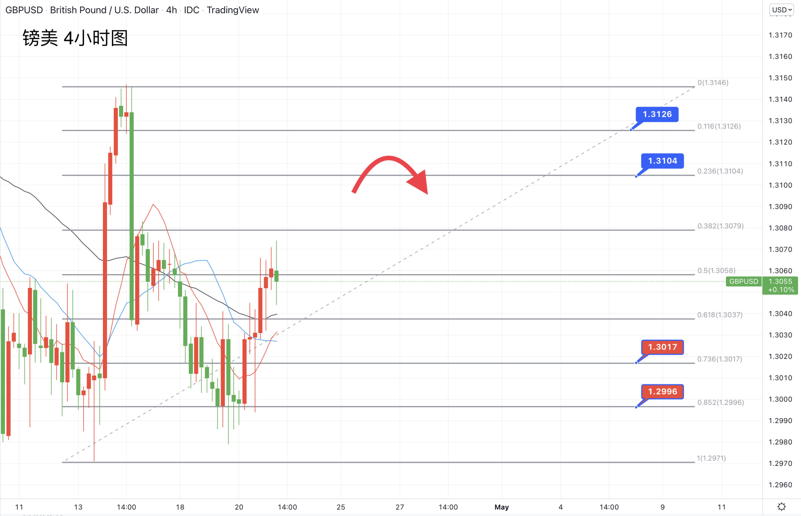 市场开始押注欧央行最快在7月份加息的可能性,加上昨日美元自高位回落,欧元自低位反弹录得三周以来最佳表现,重返1.08上方后要看能否有效突破20日均线阻力,日内欧元区CPI终值也可能对政策前景预期有指引。