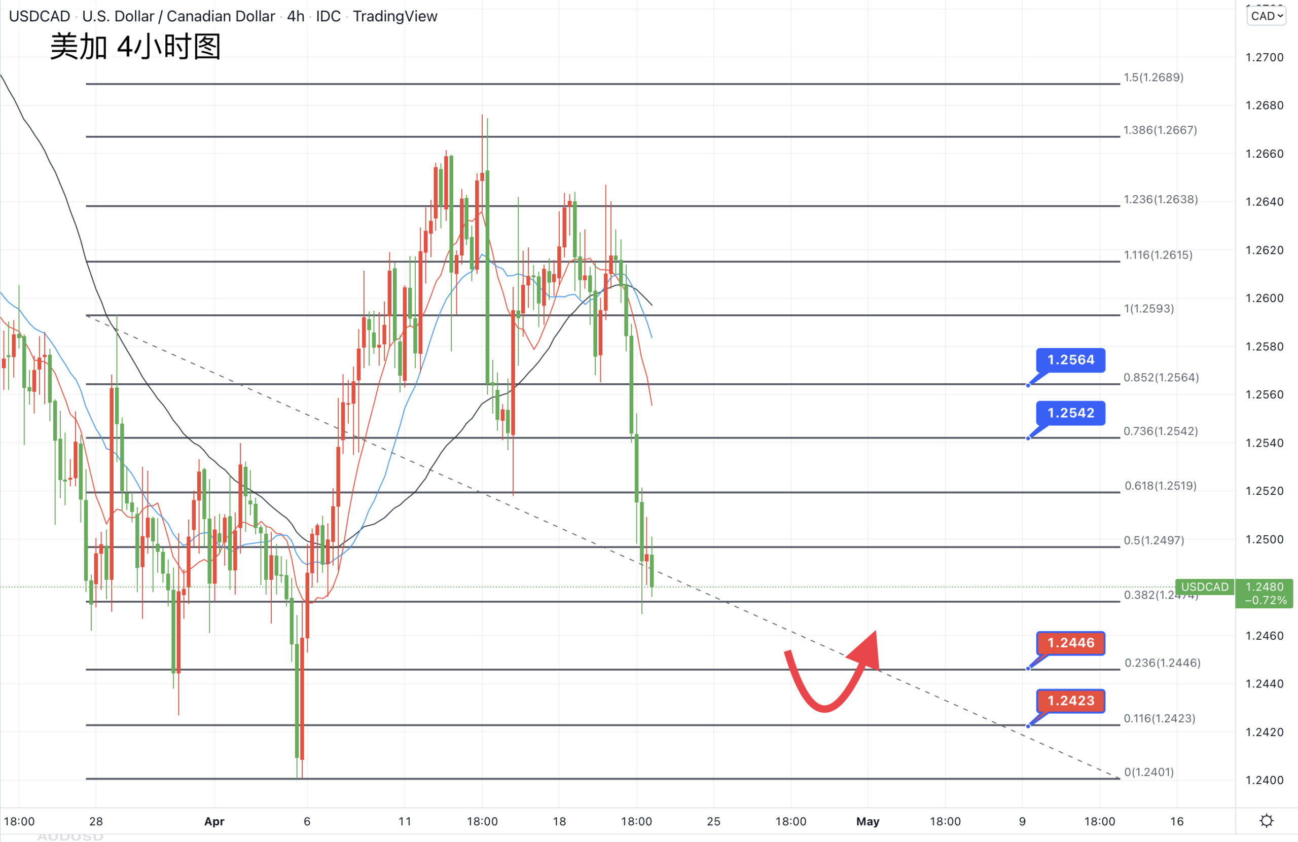 加拿大3月通胀年率加速上升至6.7%,是自1991年1月以来的最高水平,远高于预期,加大了加央行大幅加息的必要性,也力撑加元汇率走高,昨日美元兑加元录得3月初以来的最大跌幅重返1.25下方,技术上转为关注4月初的低位范围。