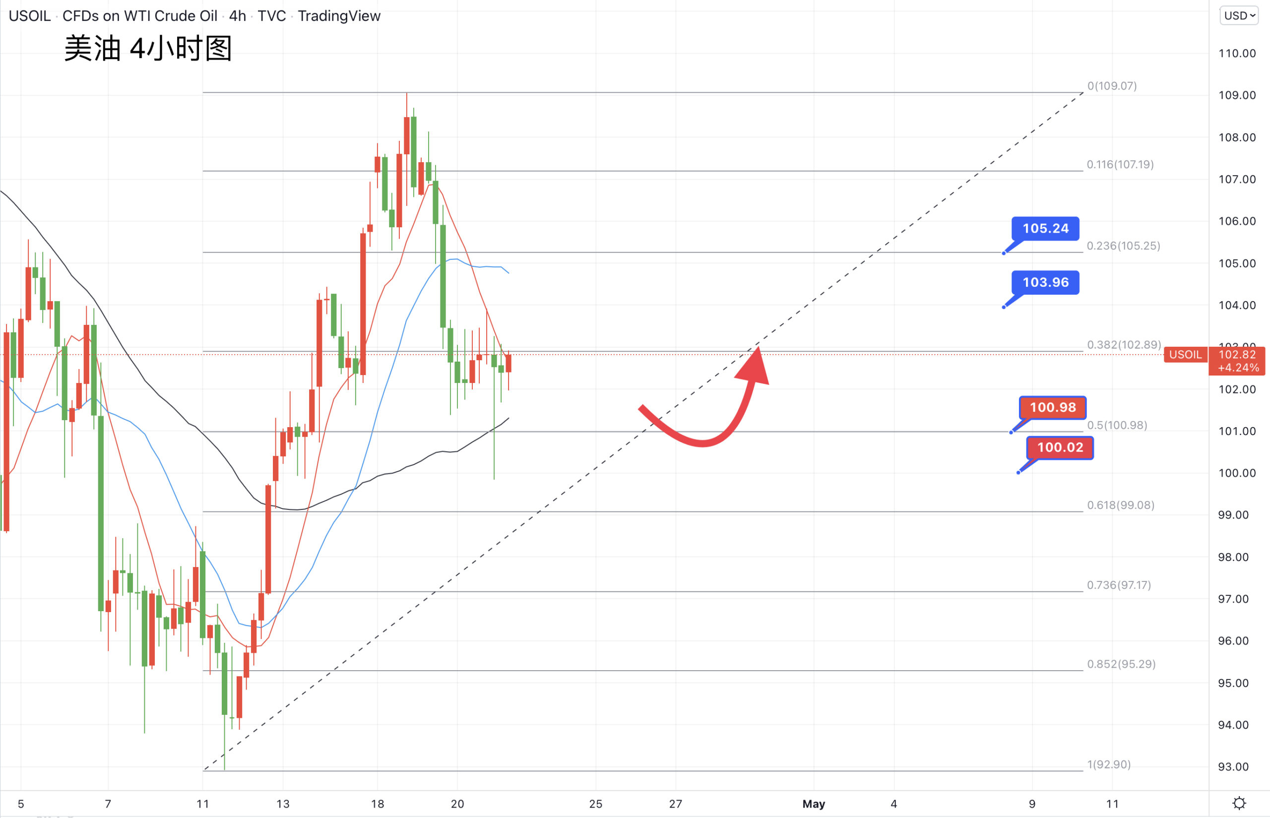 EIA数据显示,上周美国原油库存大幅下降,另外美国也加大对俄制裁,不过国际油价昨日尾盘基本收平,因为市场也存在对于经济的担忧。技术上油价昨日测试日图均线后都相继获得支撑,维持在3月初以来的趋势线处表明多头仍寻求捍卫100美元关口。