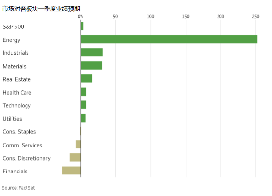 FactSet的数据显示,标普500指数第一季度的净利润率预计为12.1%,高于11.2%的五年平均水平,但低于2021年第二季度13.1%的创纪录水平。各板块中,能源行业的公司利润预计将增长两倍以上,而工业和材料集团的利润预计将增长30%以上,预计金融、非必需消费品和通信服务部门的利润将下降。
