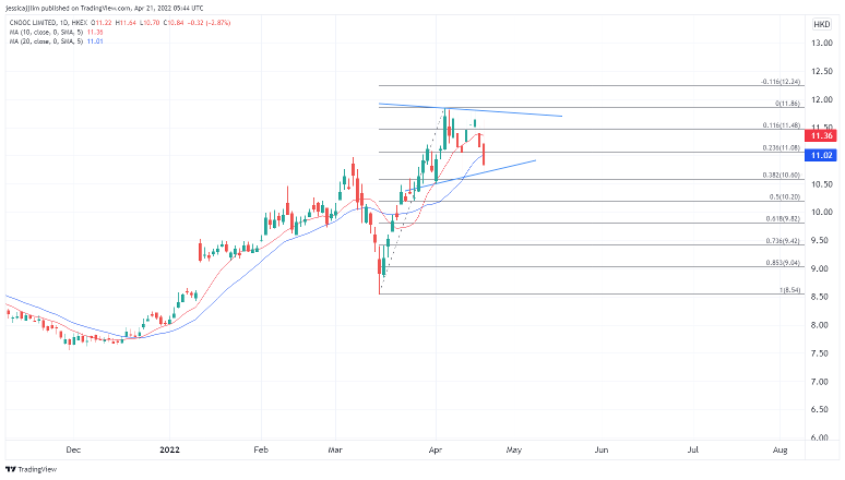 ATFX指出,近一个月中海油股价累计上涨逾15%,在三桶油中走势跑赢,除了回A行情发酵外,派息预期也是支撑股价的关键。中海油年初披露更改派息政策,于发布2021年业绩时却没派末期息,原因是股份在纽约和伦敦退市后安排回归上交所挂牌。