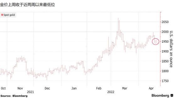 过去一周,金价曾一度逼近每盎司2000美元,但是又很快倒跌,因为投资者预期美联储将进一步大幅收紧政策,根据通胀保值债券(TIPS)的交易,实际收益率迅速上升,并在2020年初以来首次短暂转为正值,金价因此受压。