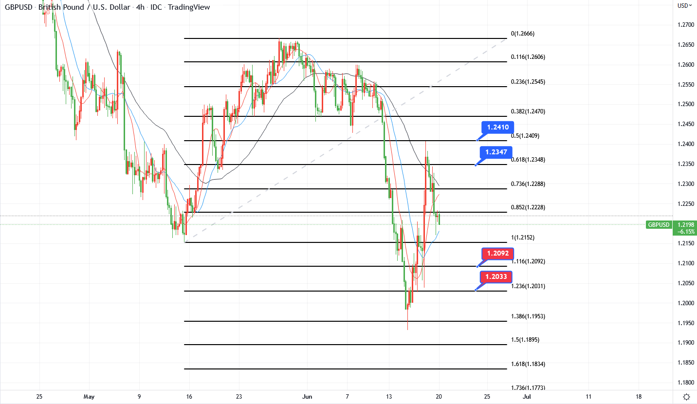英镑兑美元上周五未能延续前两日的上涨,而且录得一周以来最大跌幅,勉强守住1.22关口,但技术上要寻求反弹的话面临两大关键均线阻力,所以不排除仍有下试1.2150的空间。