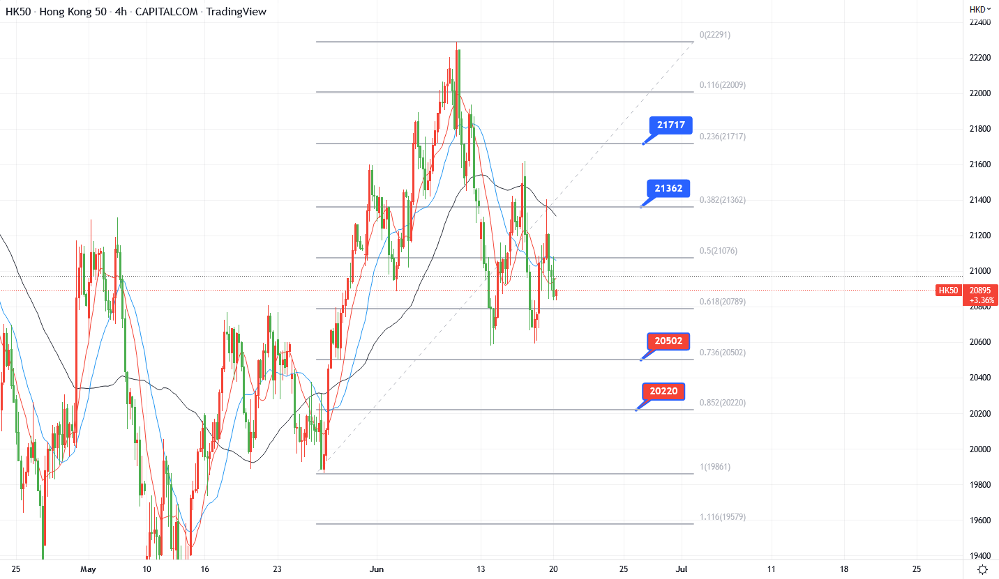 HK50上个交易日有明显反弹但尾盘大幅缩减涨幅,刚好停留在21000关口附近,所以技术上预计继续保持该关口附近的震荡,能否守住4小时10均线支撑会是决定能否反弹的关键。