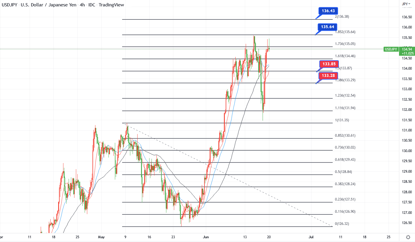 美元兑日元上周五再度冲高,一度逼近6月中旬的高位水平,不过技术上在高位范围掉头缩减涨幅,今早同样重复走势,所以135.50范围附近仍是多头要克服的关键阻碍。