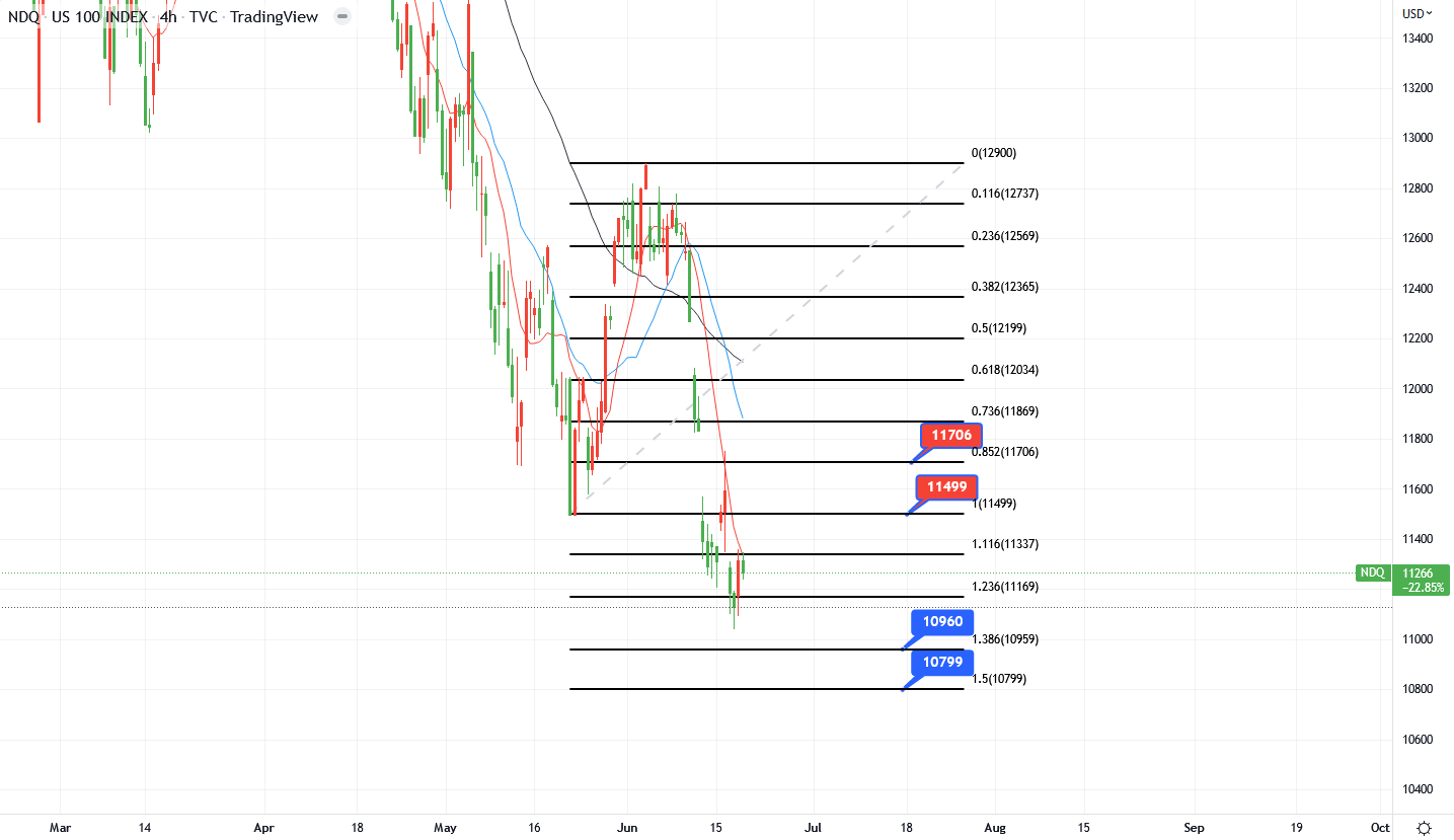 纳斯达克指数上周五上涨152.25点,或1.43%,在三大指数中表现最佳,不过留意市场情绪依然偏弱,日内美国休市整体交投兴趣不大,但目前纳指测试4小时图10均线看是否有机会突破。