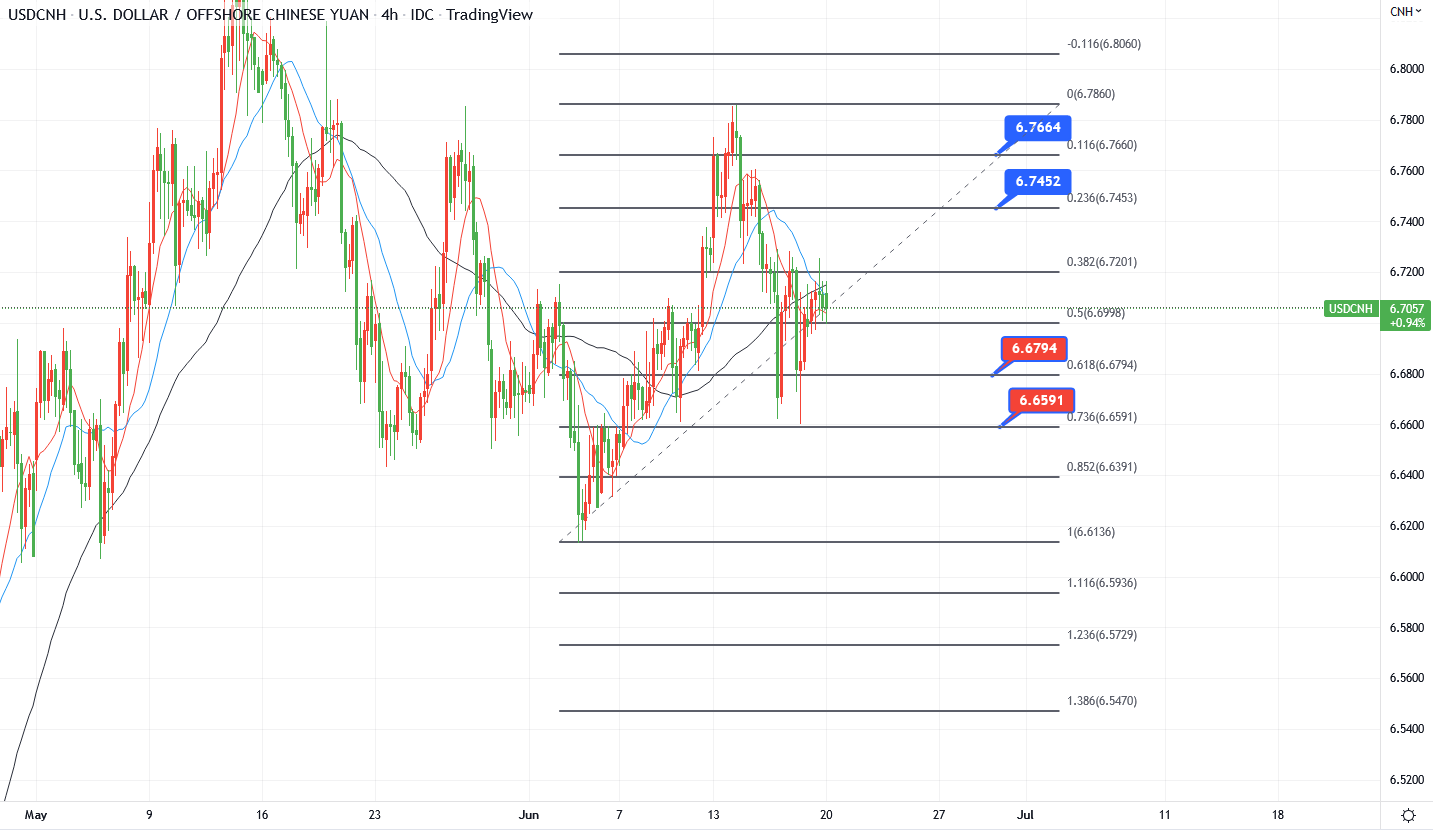 美元兑人民币上周五跟随美元小幅反弹,在两日连涨后今早顺势高开,只是在6.70上方有阻力,暂时限制反弹。4小时图显示当前可能暂时在6.72至6.70之间徘徊,该区间内也集合了关键的均线,可以作为突破的关键信号。