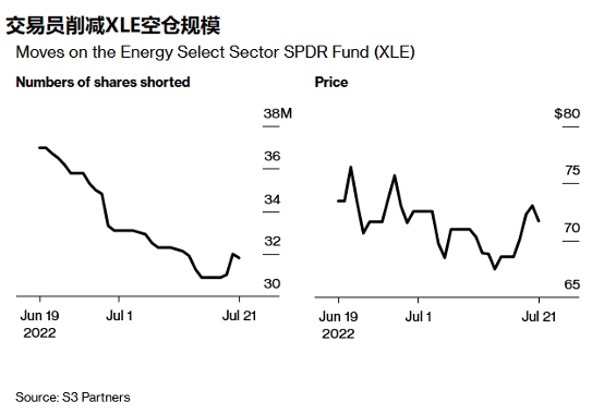 自1月份以来,投资者从能源基金中撤出了17亿美元,XLE价格相应较6月份的高点下跌了20%以上。不过据机构数据,过去30天内交易员卖空XLE的仓位规模减少了14%,表明市场开始在寻找底部,尽管经济前景和俄乌局势还构成很大不确定性。